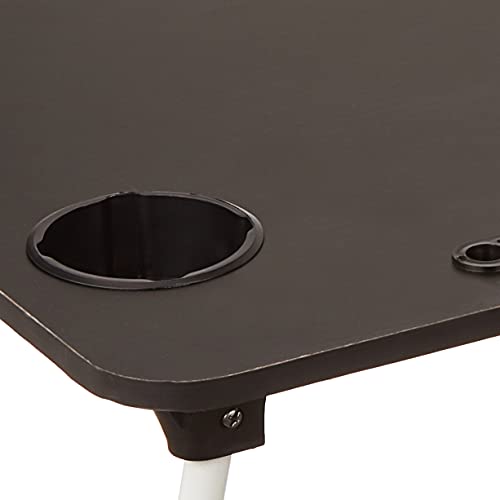 The Solimo Marsa Laptop Table is made from high quality materials. It has a frame made of steel and an engineered wood top enhanced by a strong pre-laminated board with C Edge banding for a smooth finish.