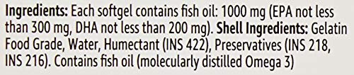 Solimo Omega-3 Fish Oil 1000mg with 30% EPA & 20% DHA – 60 soft gels come with HACCP certified hygienic packaging to ensure consistent quality. With 300 mg EPA and 200 mg DHA, they provide the required ratio of EPA and DHA for better metabolism and cardiovascular health. They are made from quality fish oil tissues, free from additives like artificial colour or flavour. Their soft gel composition aids easy absorption of essential omega-3 fatty acids, to maintain heart, kidney, liver and brain health and boost immunity.