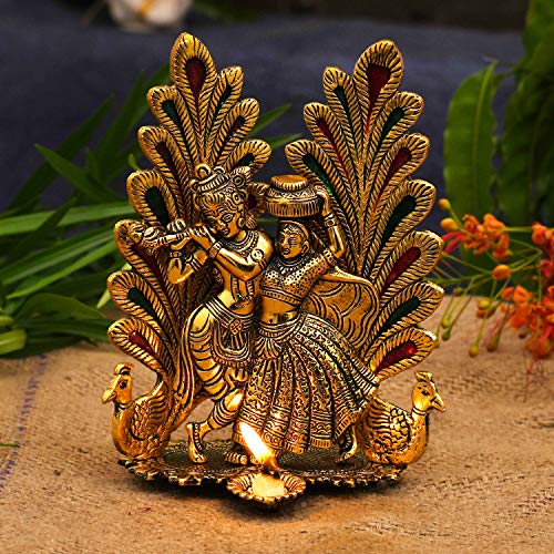 - "Shree Krishna and Radha is that feeling of love which connects a living being to his creator. " This beautiful Lord Radha Krishna Love Couple Statue Hindu God Makhan chor/Laddu Gopal Sculputer showpiece figurine from collectible is a wonderful gifting option for your any Family Members & Friends in any occasion. Ideal to keep in your puja mandir room or living room in a showcase.