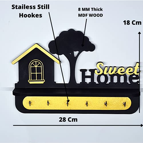 D Unique Home Decor Unique Premium Quality Wooden stylish Key Holder For Wall Decor With Stylish Stainless steel 6 Hooks Beautiful Key Organizer for Home Decoration This Designer Product is made by 8 mm MDF wooden. With Black And White Color option, Hooks Are made with High Quality Stainless Steel . this is Wall Mount Product Easy To Hang With Double side tape or With Nail Support. This Unique Beautiful Key Hanger Make more Beautiful to your home, Perfect Gift Item : A perfect gift idea for your friends, family members, friends and loved one during special events like house warming party, Diwali, New Year, Birthday, Valentine for her/ him etc. Its Wall Mounted key hanger/ Key Hanging/ Key Holder Keychain Holder for Home decor is Ideal for Home, Living Room, Bedroom & suitable for any indoor area. Each keyring holder has gone through a stringent quality checking process in multi-stages, with a checkpoint of multiple quality aspects. The modern designed Key Holders is a great addition to your space.