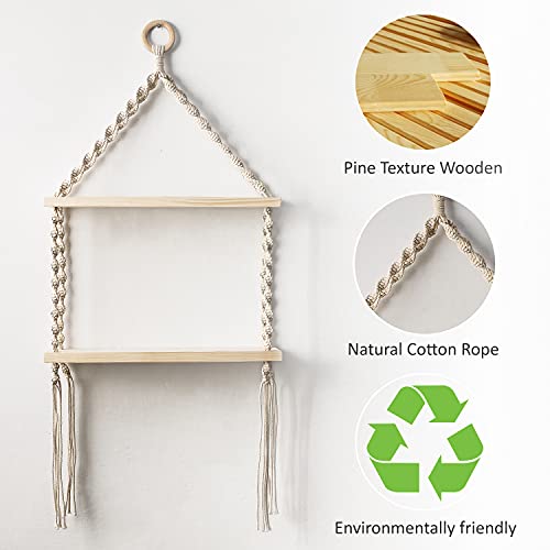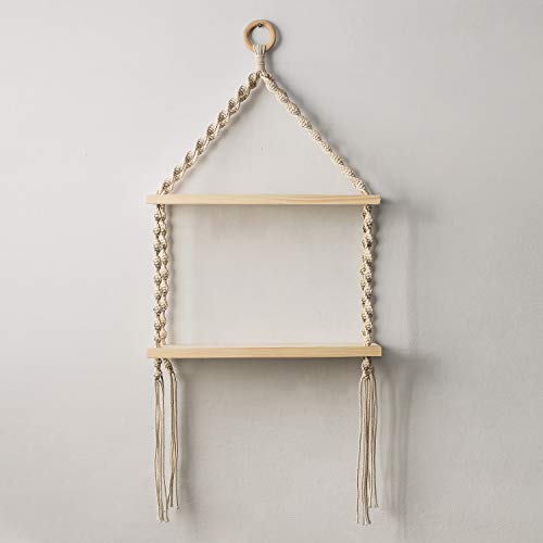 Beautiful macrame wall hanging double shelf with gorgeous pattern that is made of 100% pure natural cotton cord and complemented by a softer side weave details.Totally natural & additive-free material not only solid and durable, but also good for the environment