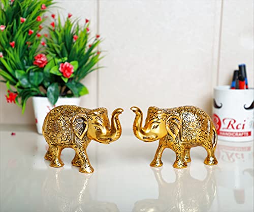 ★ Metal Elephant Small Size Gold Polish 2 pcs Set for Showpiece Enhance Your Home