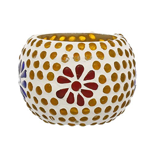 JaipurCrafts tealight candle holder work as a tealight holder/candle holder and can even be used in dining rooms and halls for the decoration purpose and parties etc. Also It can be used as a unique gift too and the best and amazing thing about the product is that it shines like a diamond whenever a tealight is burned inside. Tealight holder made of glass and beautiful cover with mosaic hand work to help lighting the candles for longer time and in attractive way. Brighten up the ambiance of your living space with this tealight holder. This tealight holder will add charm to your home. It is handcrafted, colorful stained glass create the mosaic like effect.