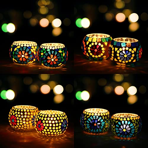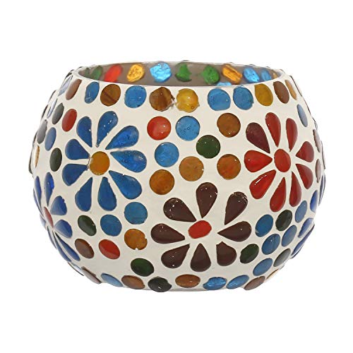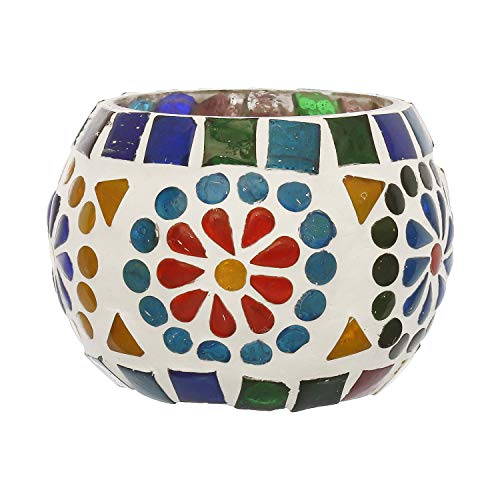 JaipurCrafts tealight candle holder work as a tealight holder/candle holder and can even be used in dining rooms and halls for the decoration purpose and parties etc. Also It can be used as a unique gift too and the best and amazing thing about the product is that it shines like a diamond whenever a tealight is burned inside. Tealight holder made of glass and beautiful cover with mosaic hand work to help lighting the candles for longer time and in attractive way. Brighten up the ambiance of your living space with this tealight holder. This tealight holder will add charm to your home. It is handcrafted, colorful stained glass create the mosaic like effect.